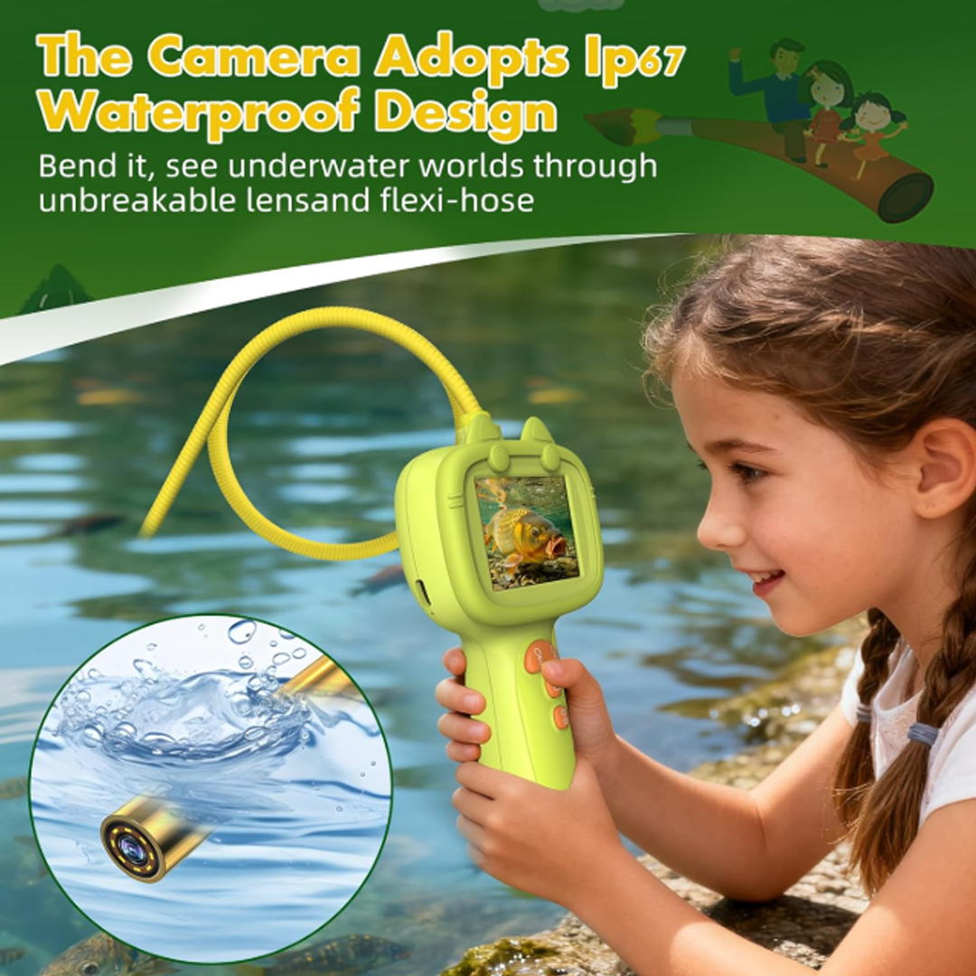 Absolutely. The IP67 waterproof tube lets kids safely explore puddles, aquariums, and even streams without damage.